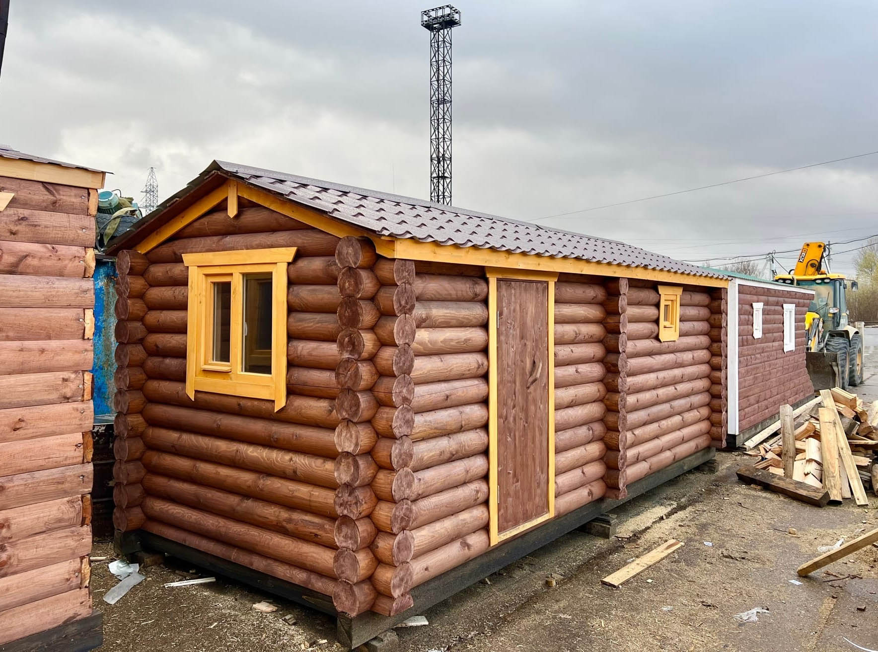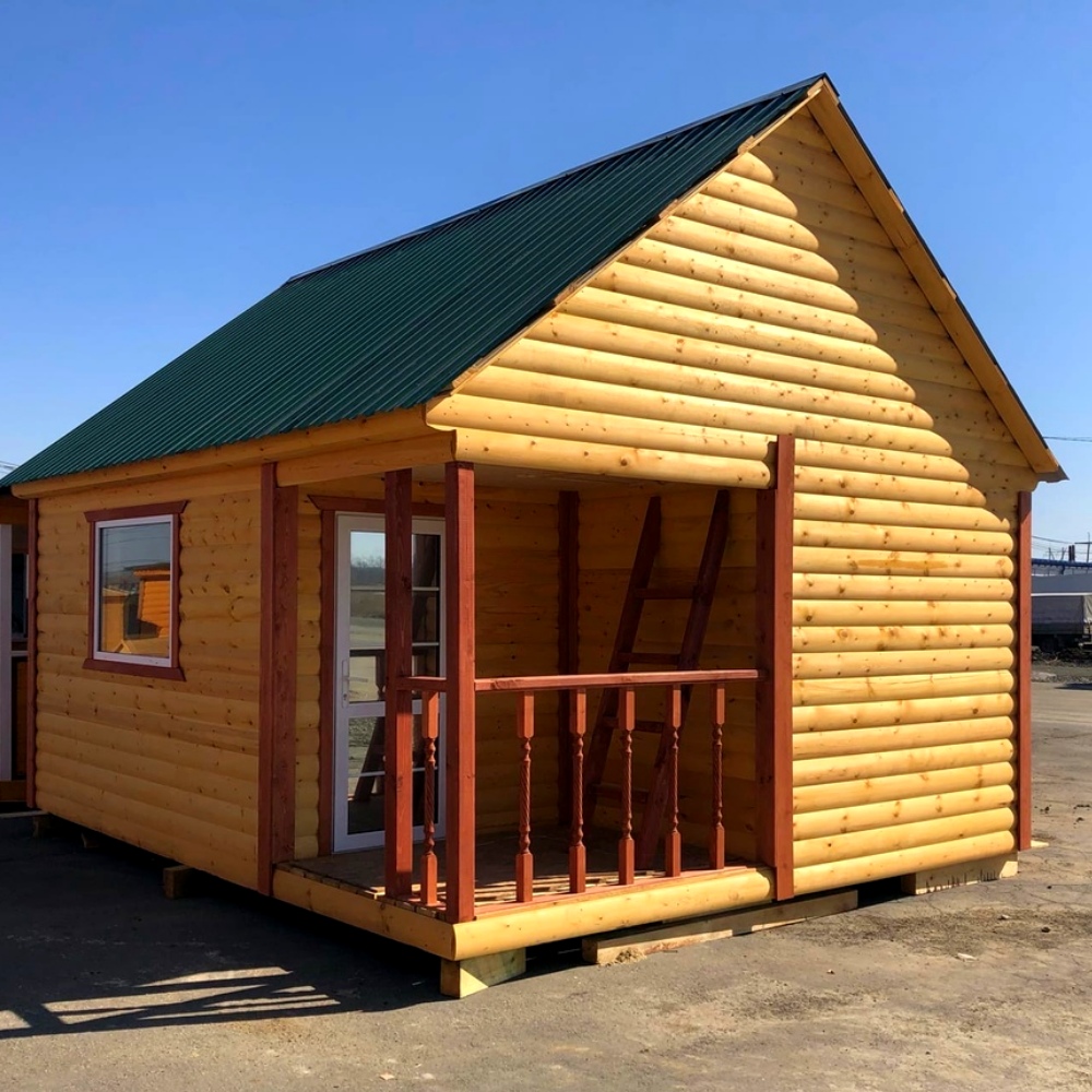 - Внешняя отделка — имитация бревна сорта АВ.
