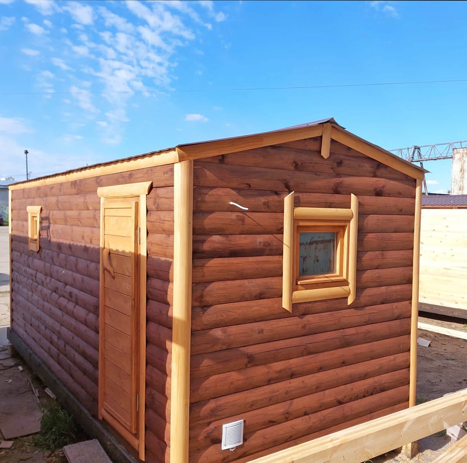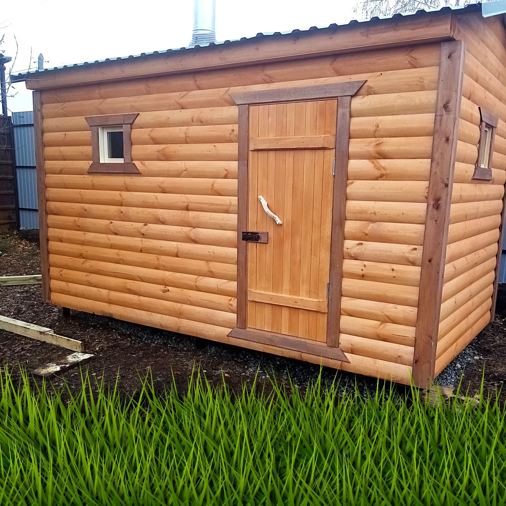 - Внешняя отделка: имитация БРЕВНА сорта АВ окрашена защитно-декоративным составом.