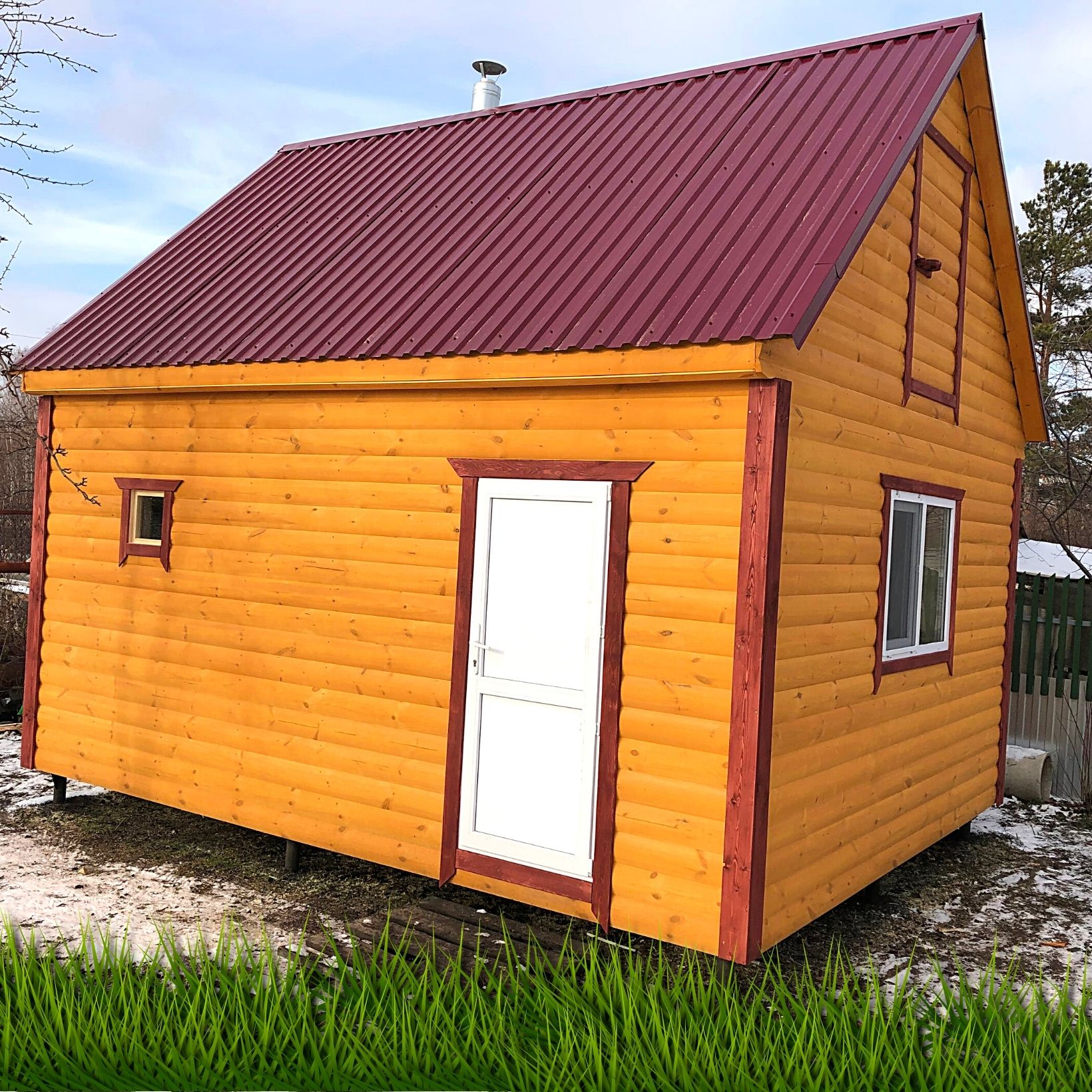 - Крыша - двухскатная утепленная, цветной профлист