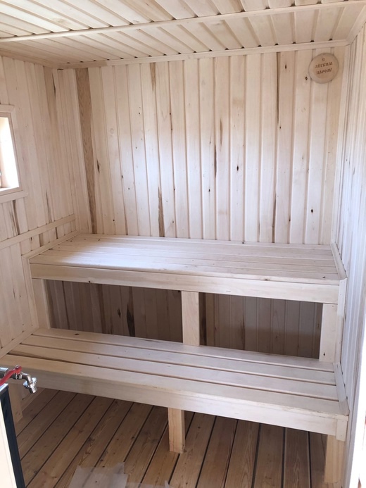 - Парильное отделение: пол утеплен/лиственница, стены вагонка сосна сорта АВ.