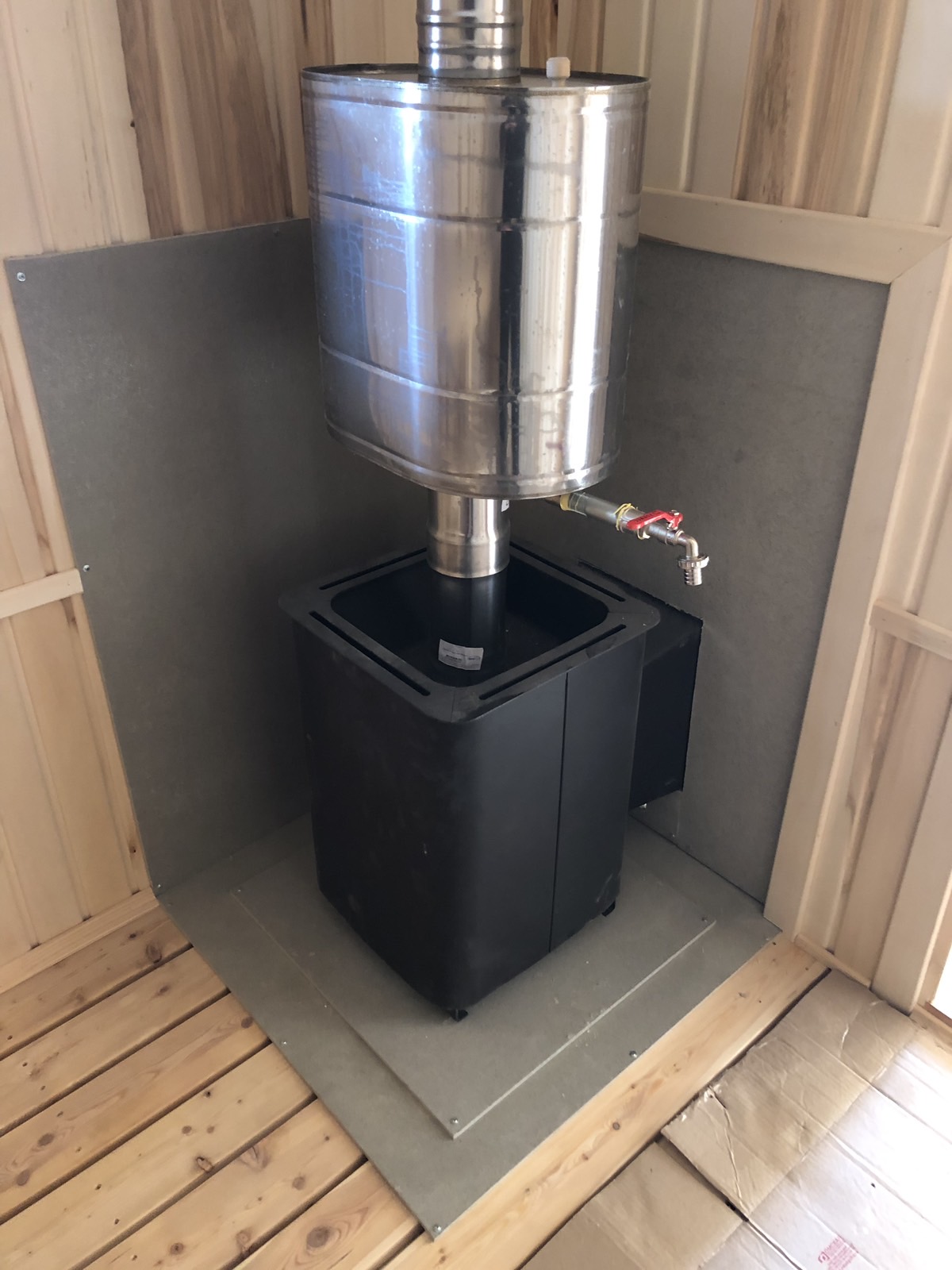 - Печь 4мм с баком для воды из нержавейки и каменкой;